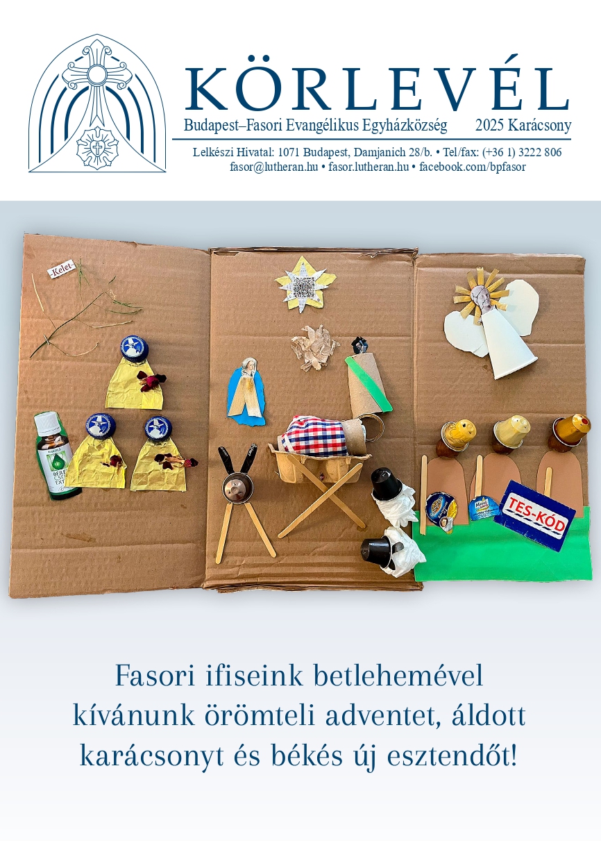 - Gyermekek karácsonya 2025. december 21., vasárnap 16 óra, fasori evangélikus templom. Várunk szeretettel minden családot erre a rendhagyó istentiszteletre. Műsorral és ajándékokkal készülünk.